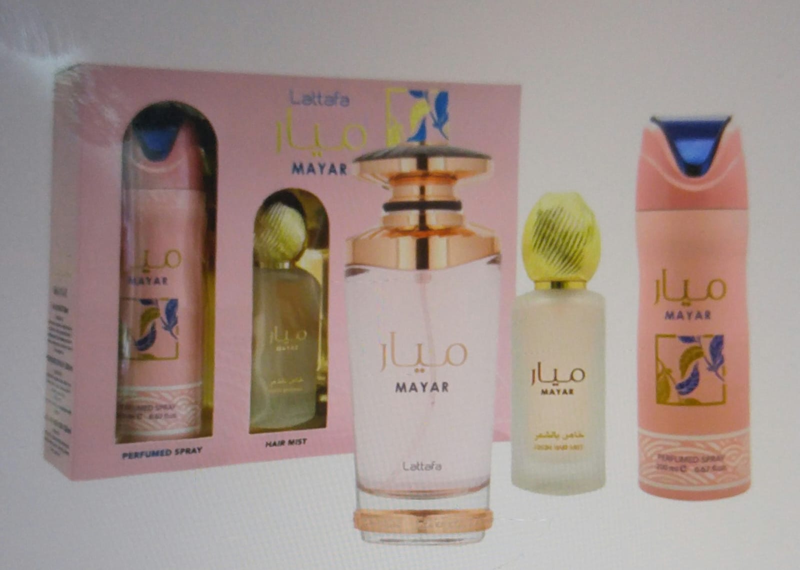 Mayar Set by Lattafa( Perfume,Body Spray y Hair spray)